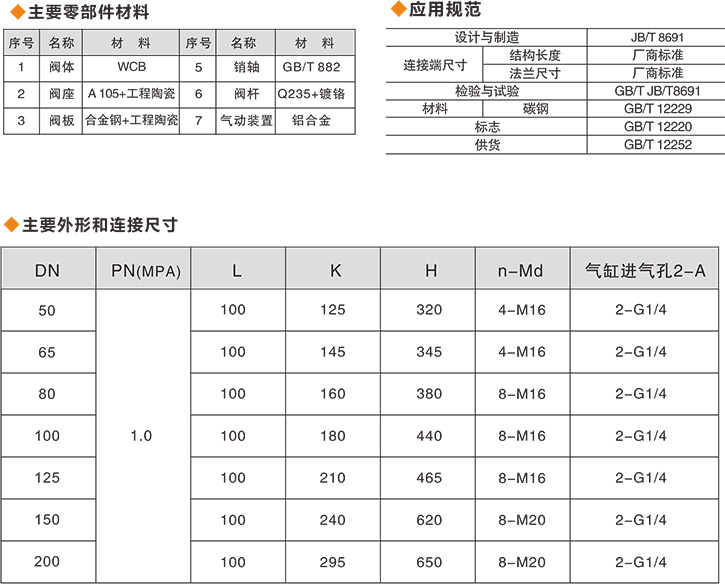 本閥用于電廠干灰系統倉泵進料閥,可用于高硬度的顆粒介質,也可用于礦山、造紙、化工等各類有磨損的干粉塵、水蒸氣的管道上作啟閉之用。公稱壓力1.0MPa,適應溫≤150℃。